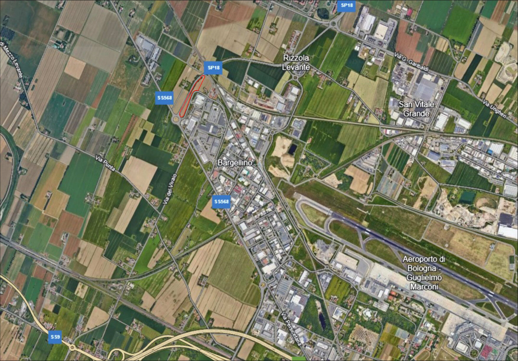 L’area ubicata fra la S.P. 18 e via A. De Gasperi è adiacente alla rotonda della S.P. 568 (via Persicetana) gode di una visibilità eccezionale, rendendo pertanto ottimale l’insediamento di attività espositive.